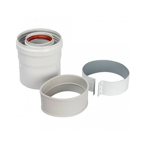 Адаптер вертикальный коаксиальный Rommer 60/100 мм (для котлов Baxi (кроме ECO Nova/Classic), Ariston, Vaillant, Viessmann, Kiturami, Mizudo, Beretta, Oasis, Wolf, Haier, Tiberis, DeDietrich, Arderia), в комплекте хомут + втулка (D60 мм, L 50 мм)